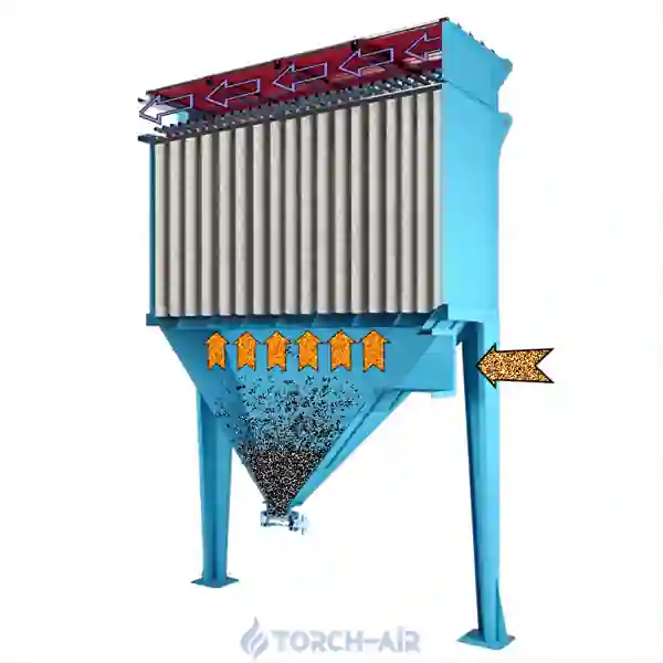 Pneumatic Cleaning SystemPeriodically filtered bags get covered with dirt, which increases the filter’s resistance. In order for the system to work in an uninterrupted fashion without any pressure differentials, the bags need to be cleaned. Cleaning is done in the following way: