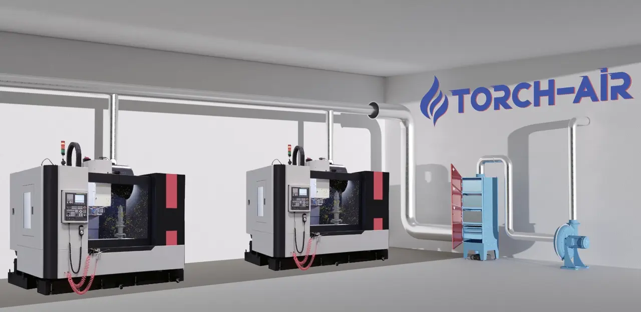 The contaminated air flow in the form of oil mist/smoke enters the receiving chamber of the unit due to the vacuum created by the exhaust fan. In the receiving chamber, the air first encounters a baffle designed to evenly distribute the airflow and separate larger liquid droplets. The air then passes through a labyrinth filter where large droplets condensed from the mist are collected. After the labyrinth filter, the air flow passes through a pre-filter, where impurities such as fine chips and dust are trapped on the mesh along with liquid droplets.